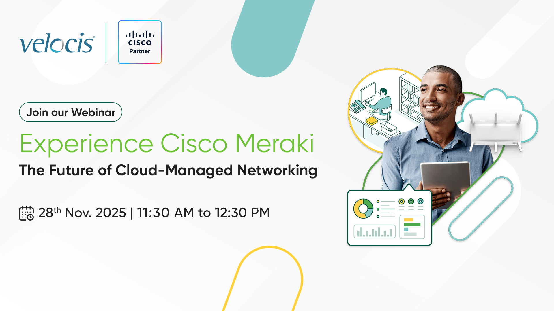 Velocis & Cisco, cordially invites you to an exclusive webinar to explore how Cisco Meraki helps organizations simplify operations, secure every connection, and deliver exceptional digital experiences, all through a unified cloud-first platform.
